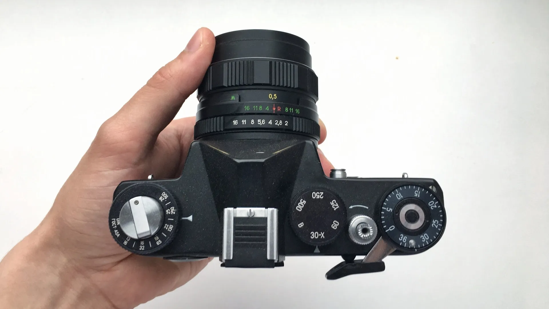 Почти на всех фотографиях сверху заметен засвет, как оказалось шторка затвора износилась и пропускала лишний свет. Эту проблему я решил, закрасил шторку маркером.